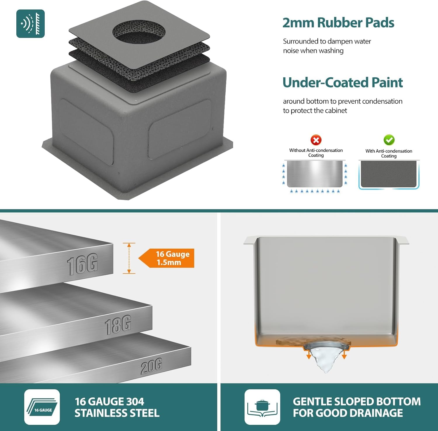 13in x 15in Bar Sink Undermount Kitchen Bar Sink Stainless Steel 16 Gauge Single Bowl Deep Undermount Bar Prep Sink Basin Rv Outdoor Garage