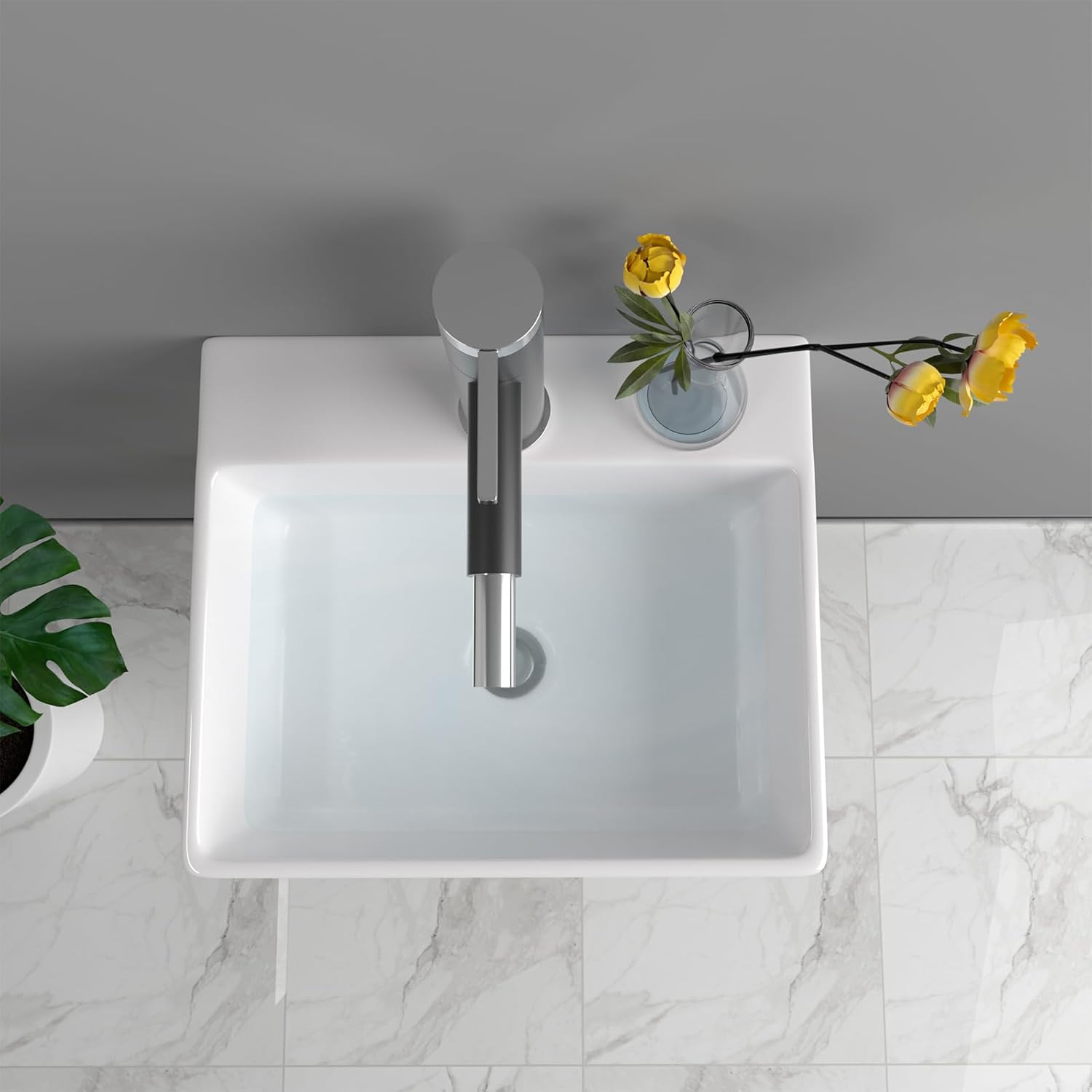 13in x11in Wall Mounted Vessel Sink Bathroom Wall Hung Sink Rectangular White Porcelain Ceramic Vessel Vanity Sink Art Basin Middle Faucet Hole