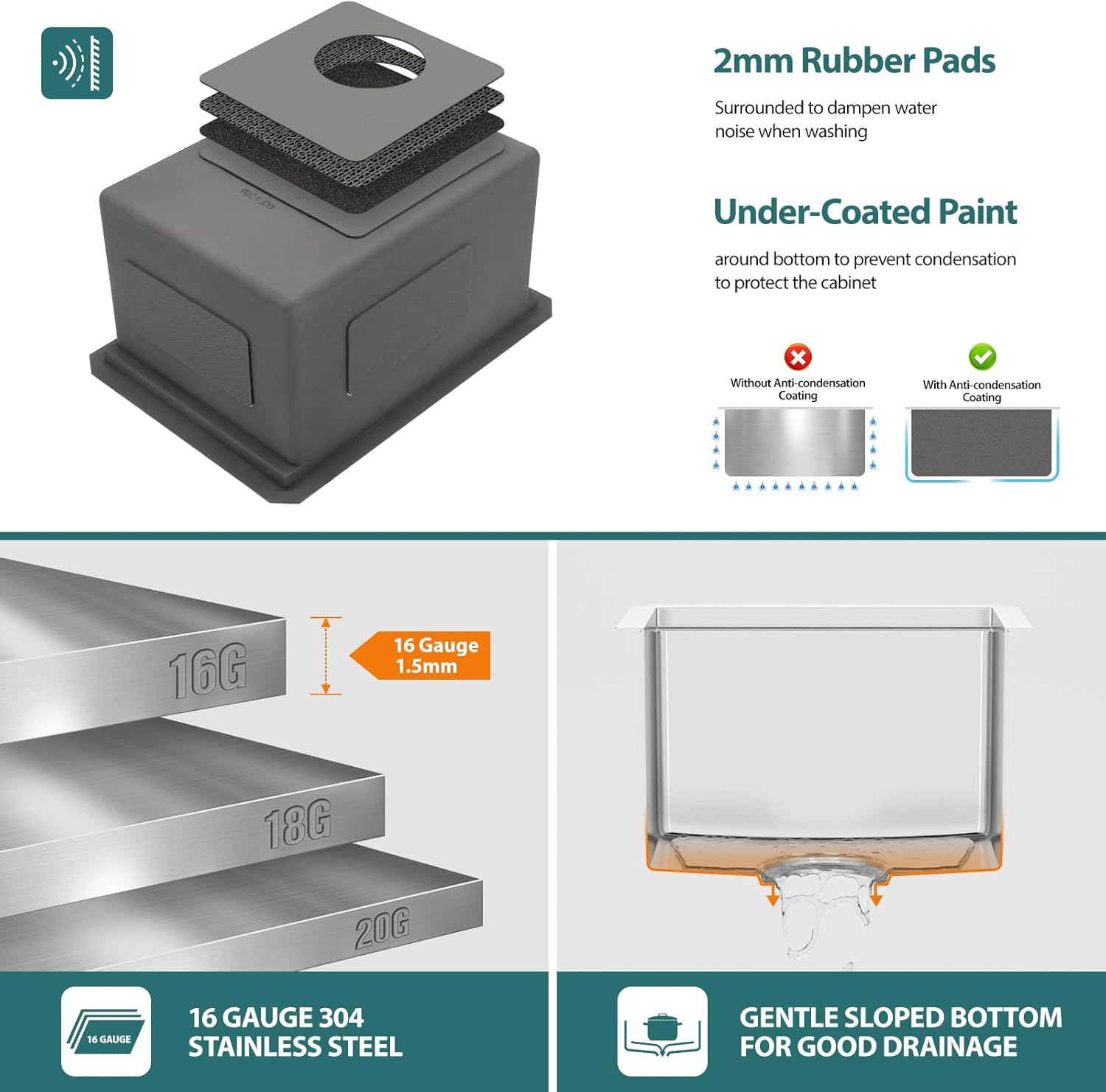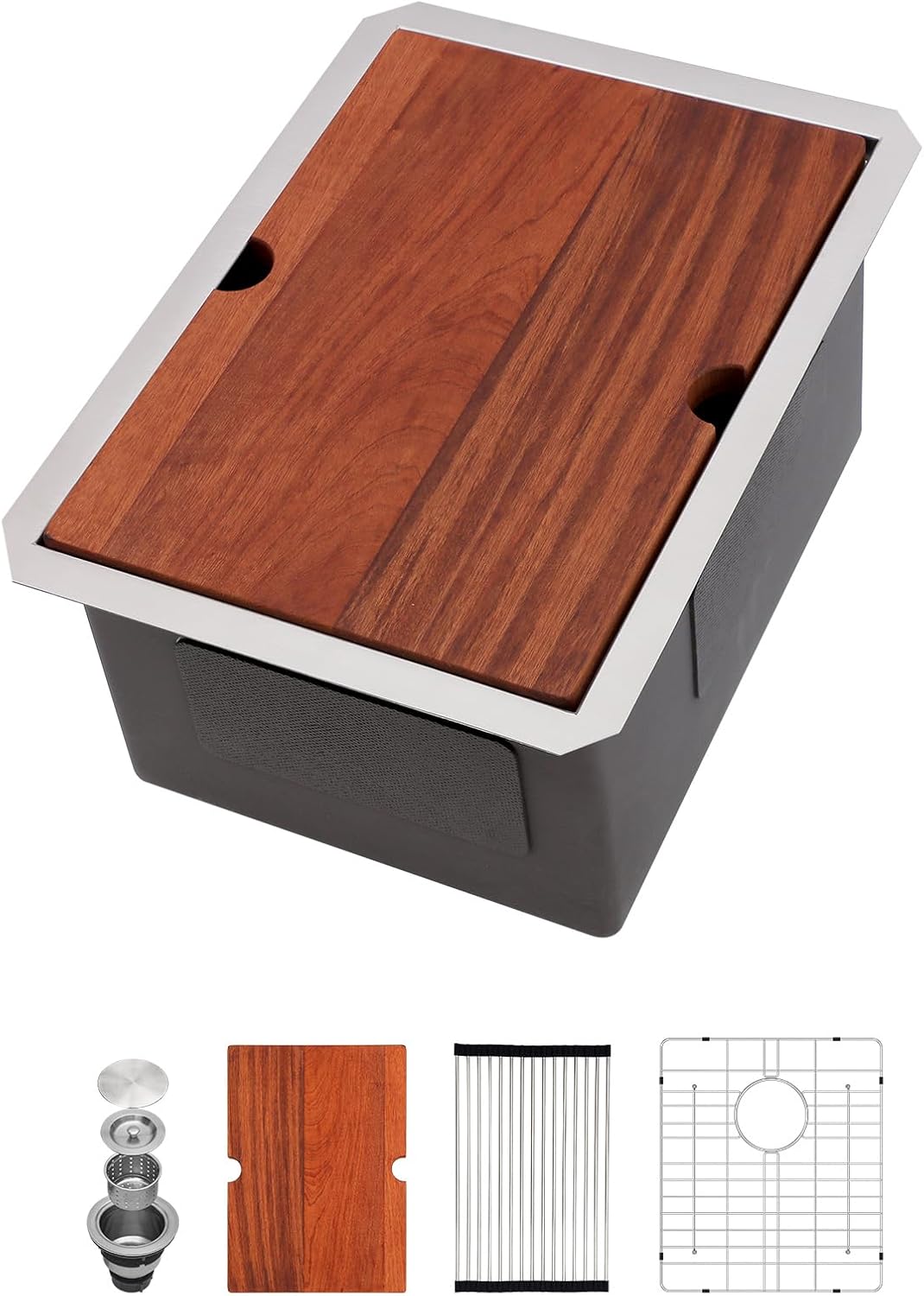 14 x 19 Inch Stainless Bar Sink Undermount Kitchen Bar Prep Sink Workstation 16 Gauge Stainless Steel Single Bowl Under Counter Kitchen Sink Bar Prep RV Sink Basin with Accessories